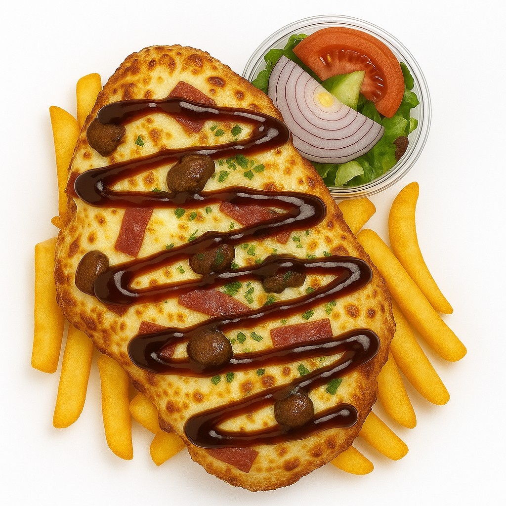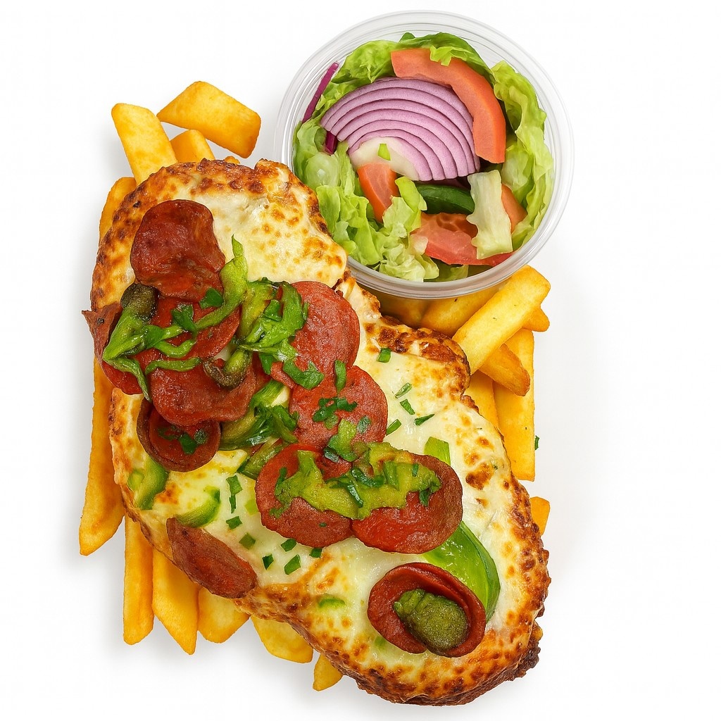 Hot Salami, Mince Beef, Onion, Jalapeno, topped with Hot Chilli SauceChoose one
