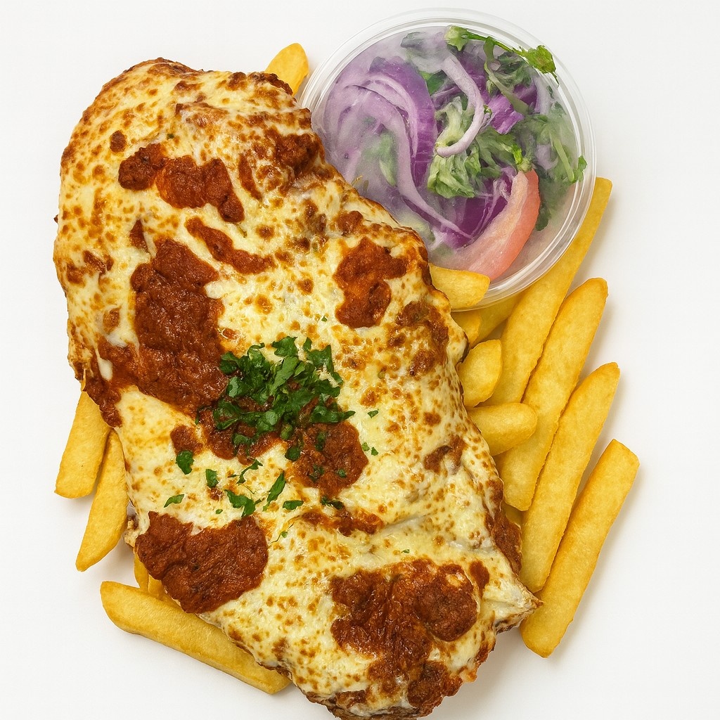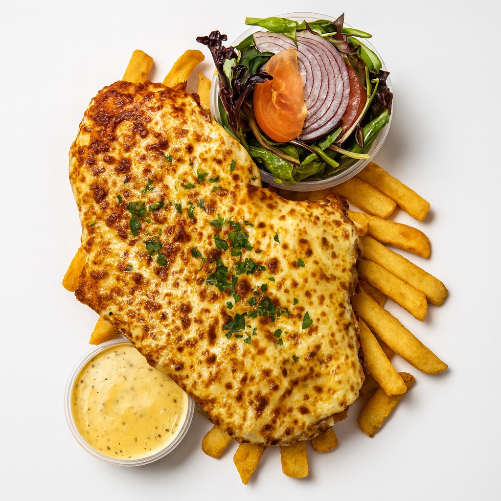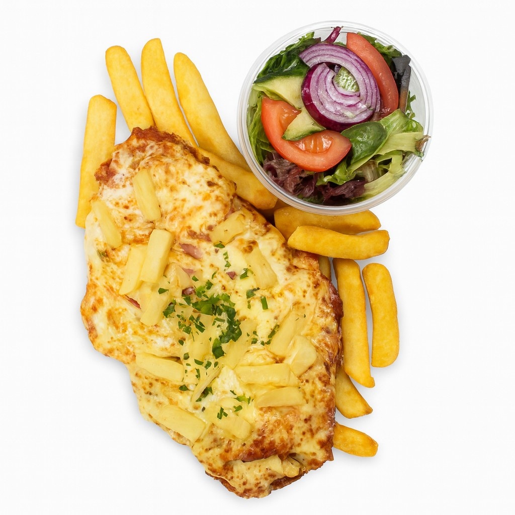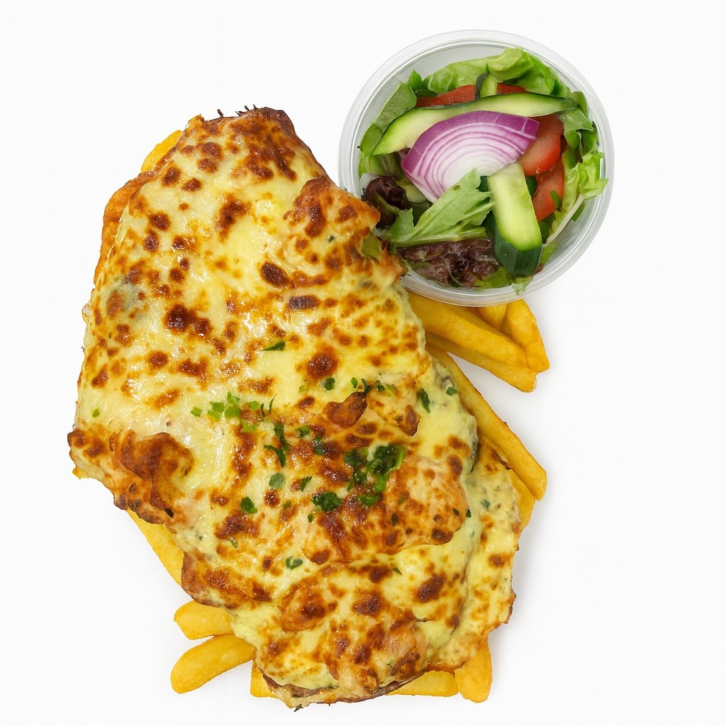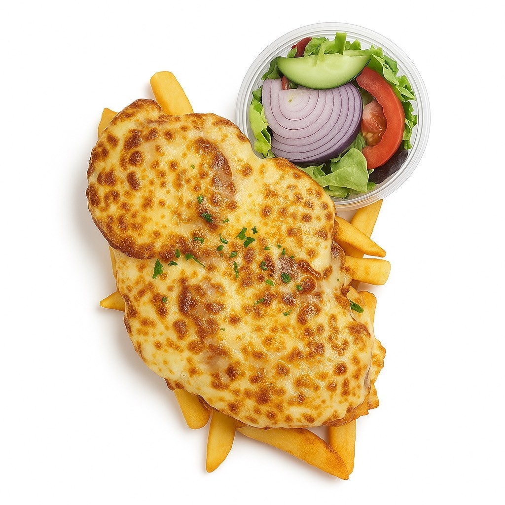 Chicken Schnitzel, Mozzarella Cheese, topped with Napoli Sauce & ParsleyChoose one