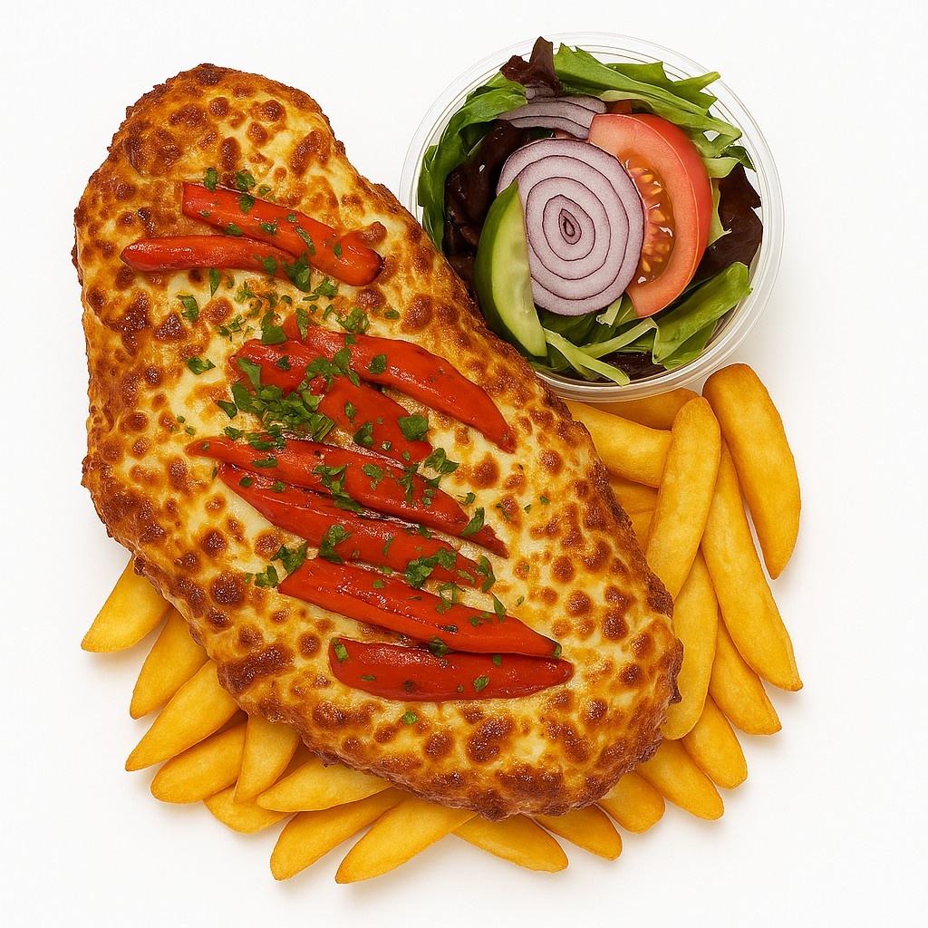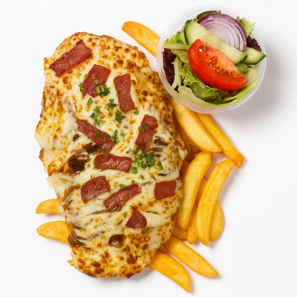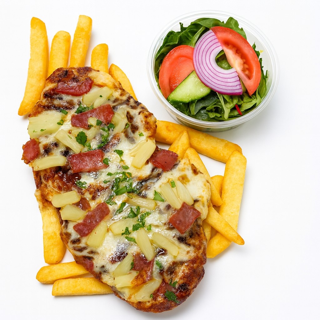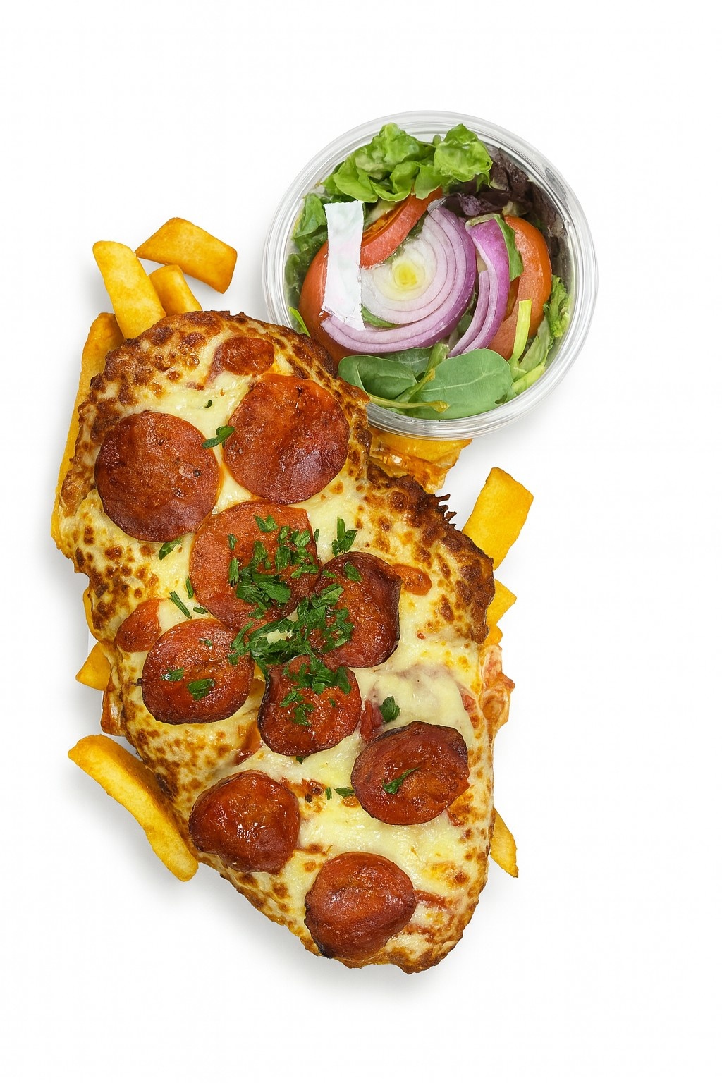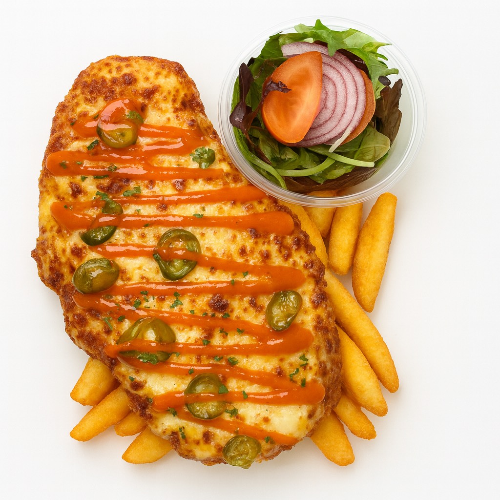 Chicken Schnitzel, Mozzarella Cheese, topped with Napoli Sauce & ParsleyChoose one