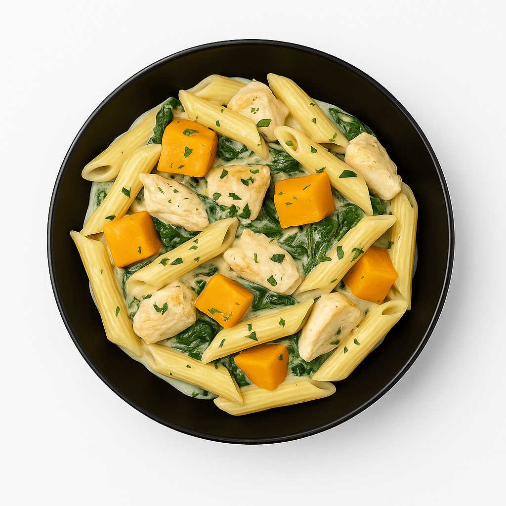 Chicken Breast, Roasted Pumpkin, Baby Spinach cooked in Creamy White Sauce0