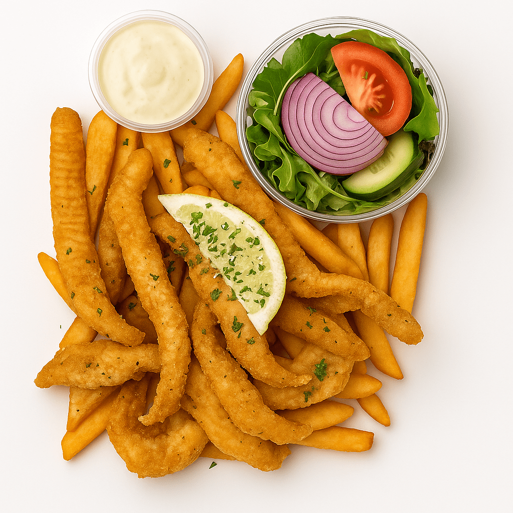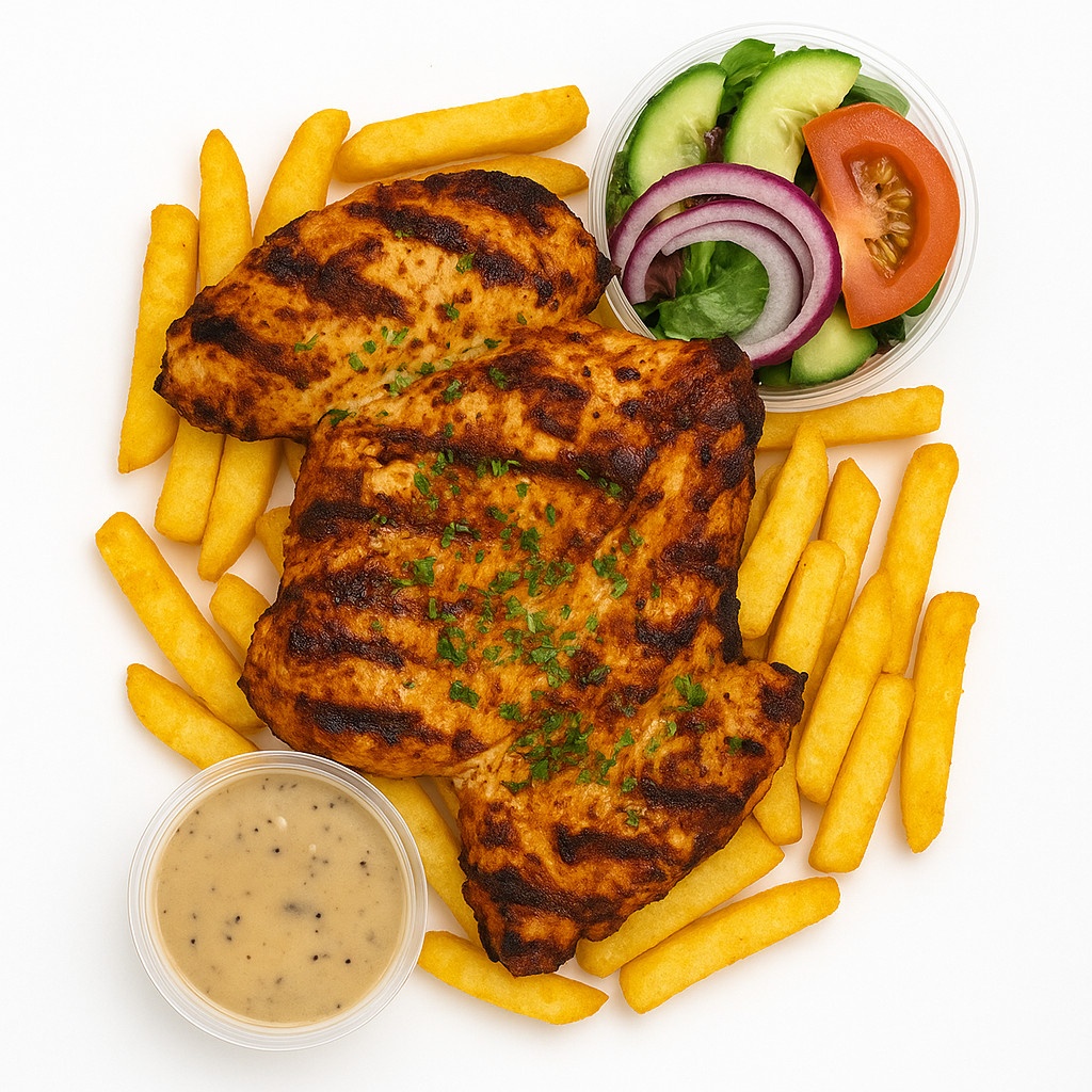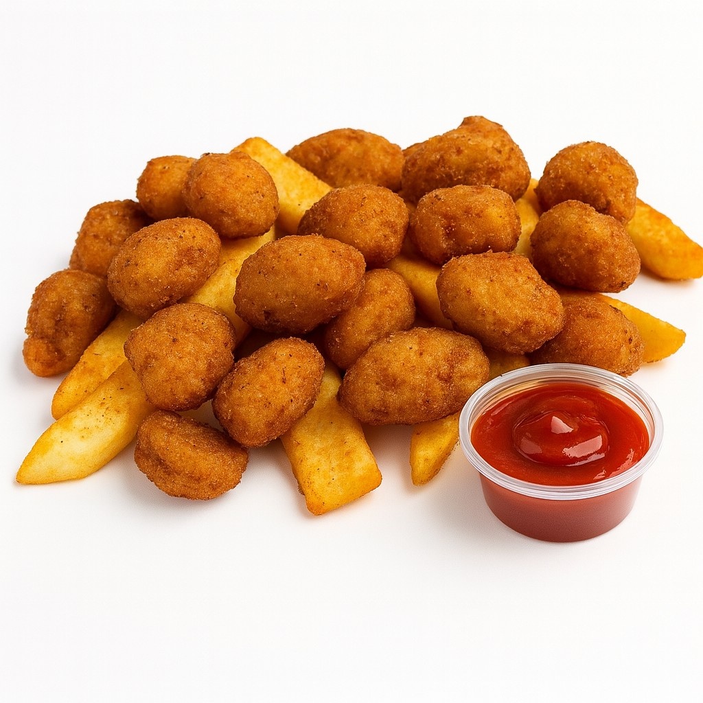 6 Nuggets with Chips (Choice of Sauce: Bbq, Tomato, Sweet Chilli)Choice of Sauce