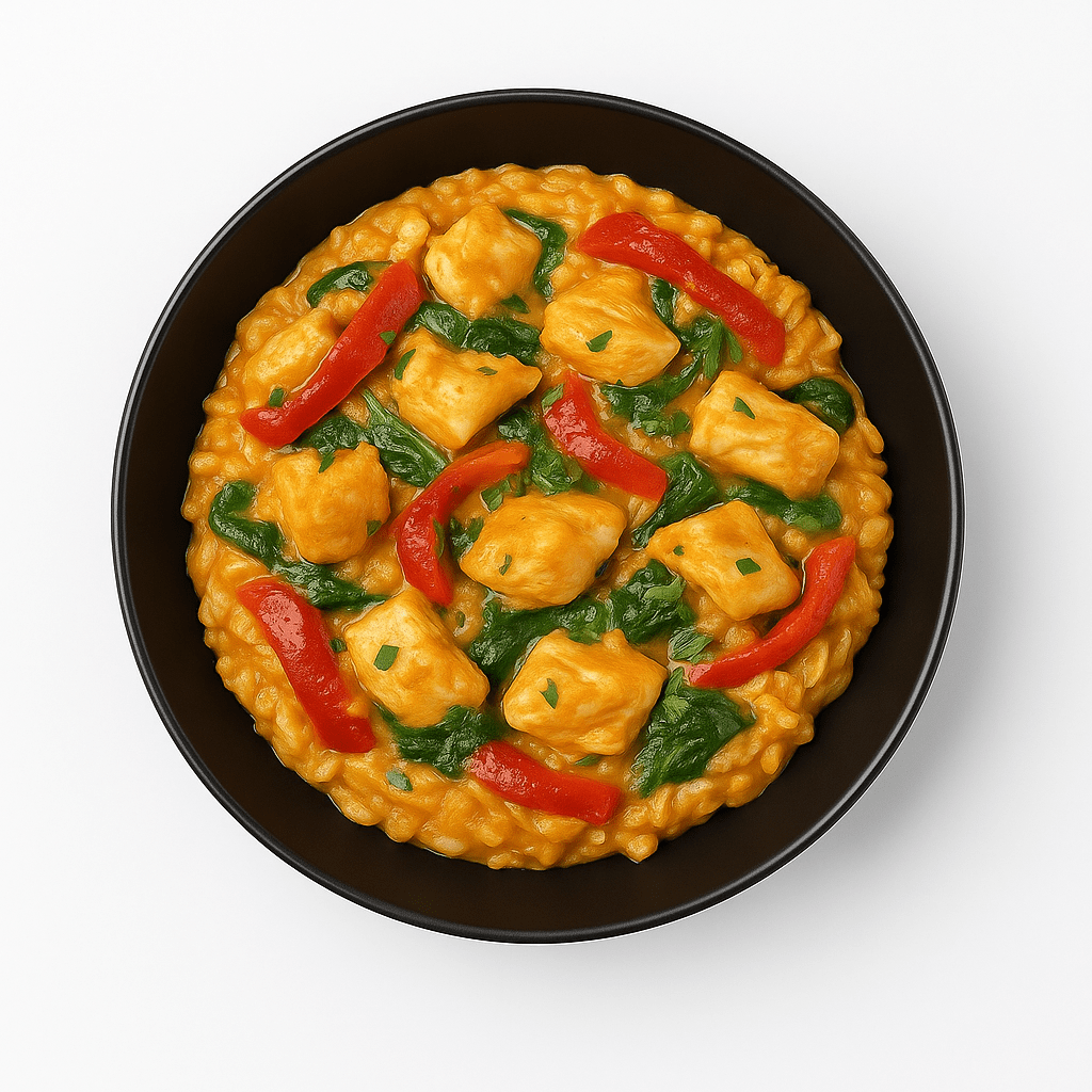 Chicken, Onion, Roasted Peppers, Spinach in Creamy Tikka Sauce0