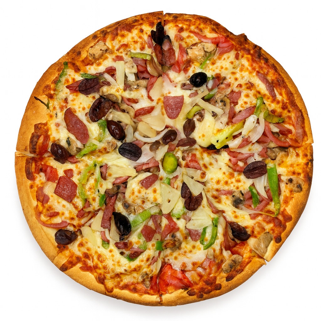 Ham, Salami, Mushroom, Capsicum, Onions, Bacon, Olives & PineappleChoose one