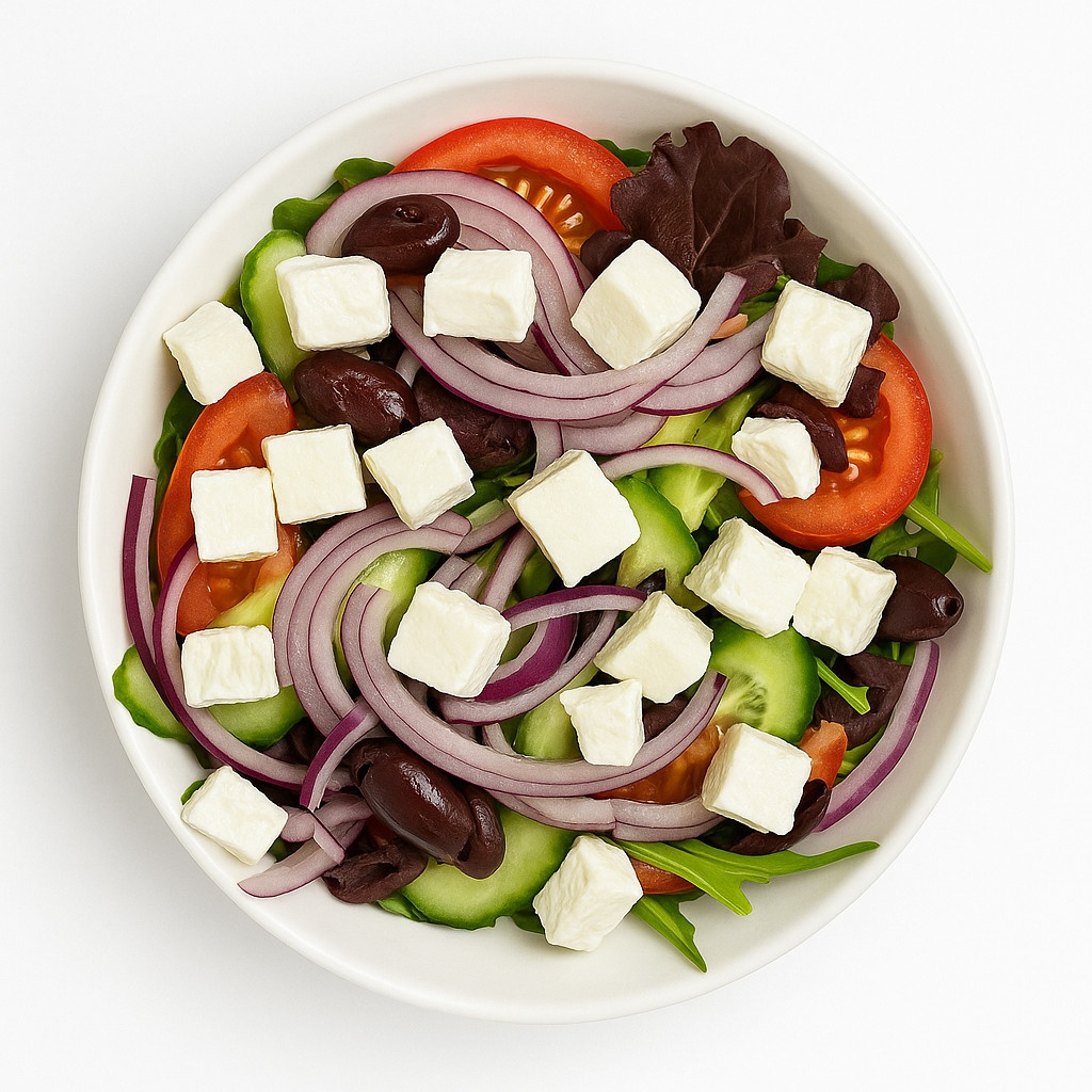 Mixed Lettuce, Tomato, Cucumber, Onion, Olives, Feta topped with Greek DressingSalad OPT
