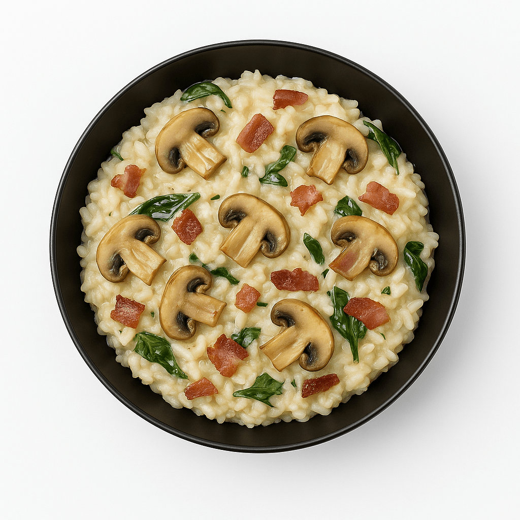Mushroom, Bacon, Green Peas, Spinach in Creamy White Sauce0