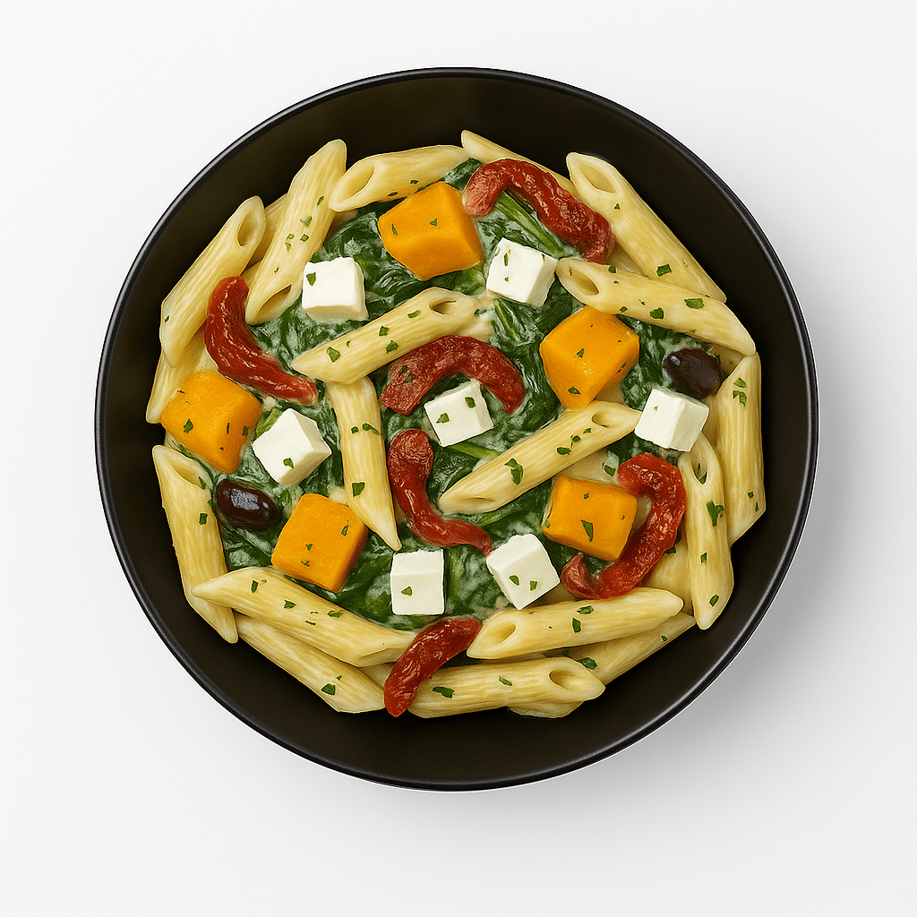 Roast Pumpkin, Sun Dried Tomato, Spinach & Feta in Creamy White SaucePasta Noodles