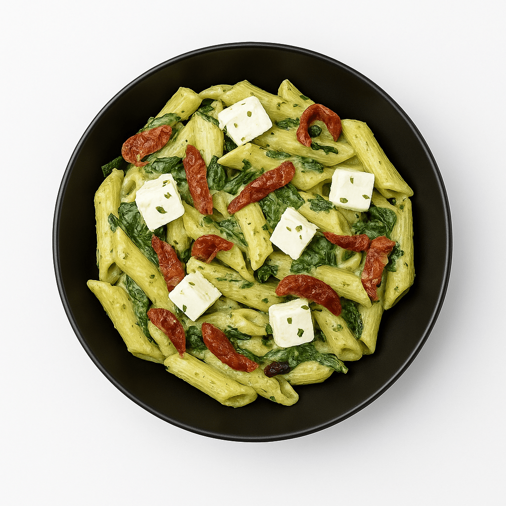 Sun Dried Tomato, Feta, Spinach in Creamy Pesto SaucePasta Noodles