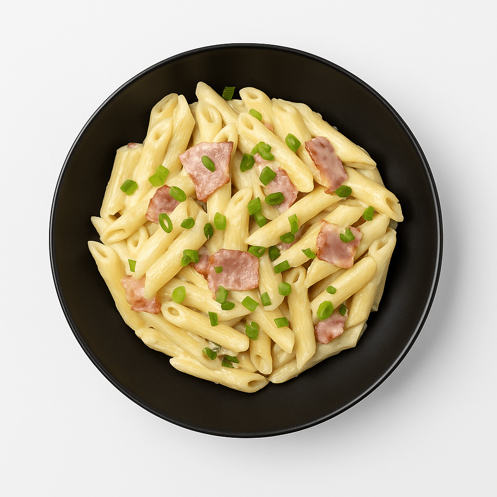 Bacon, Onion, Roasted Peppers, Fresh Chilli, Cooked in Fresh Napoli SaucePasta Noodles
