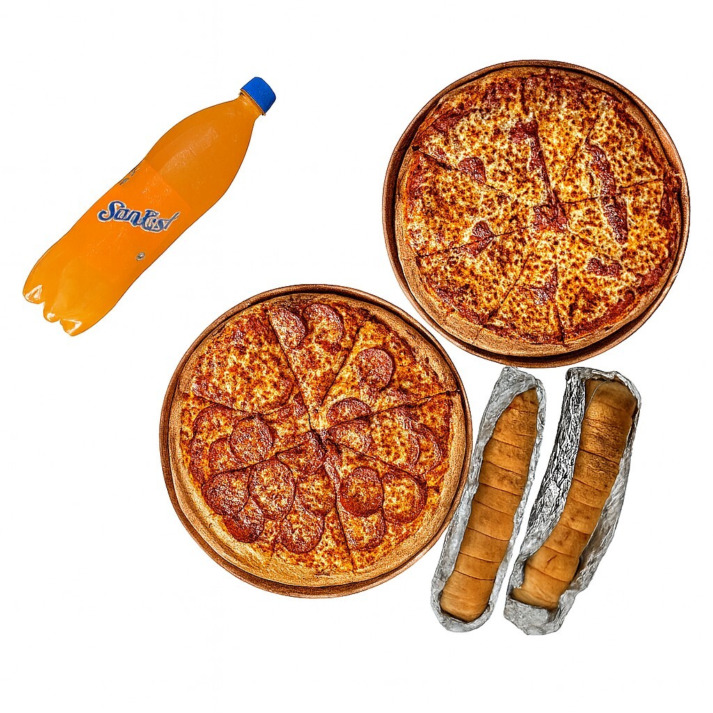 Family Combo$38.902 LARGE TRADITIONAL PIZZAS + GARLIC BREAD + 1.25L DRINK
