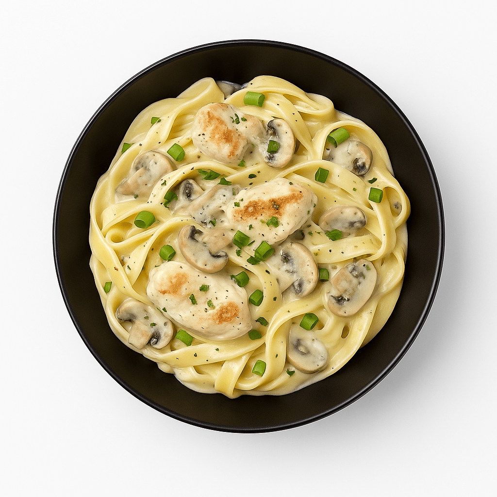Chicken Breast, Mushroom, Spring Onion, Garlic in Creamy White SaucePasta Noodles
